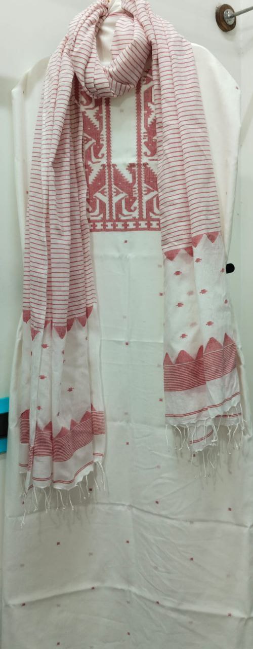 Apart from the beautifully designed and woven fabric we also cater to the jamdani blouse pcs, dupattas & stoles that are a favourite with ladies all over the nation due to hand spun cotton yarn.